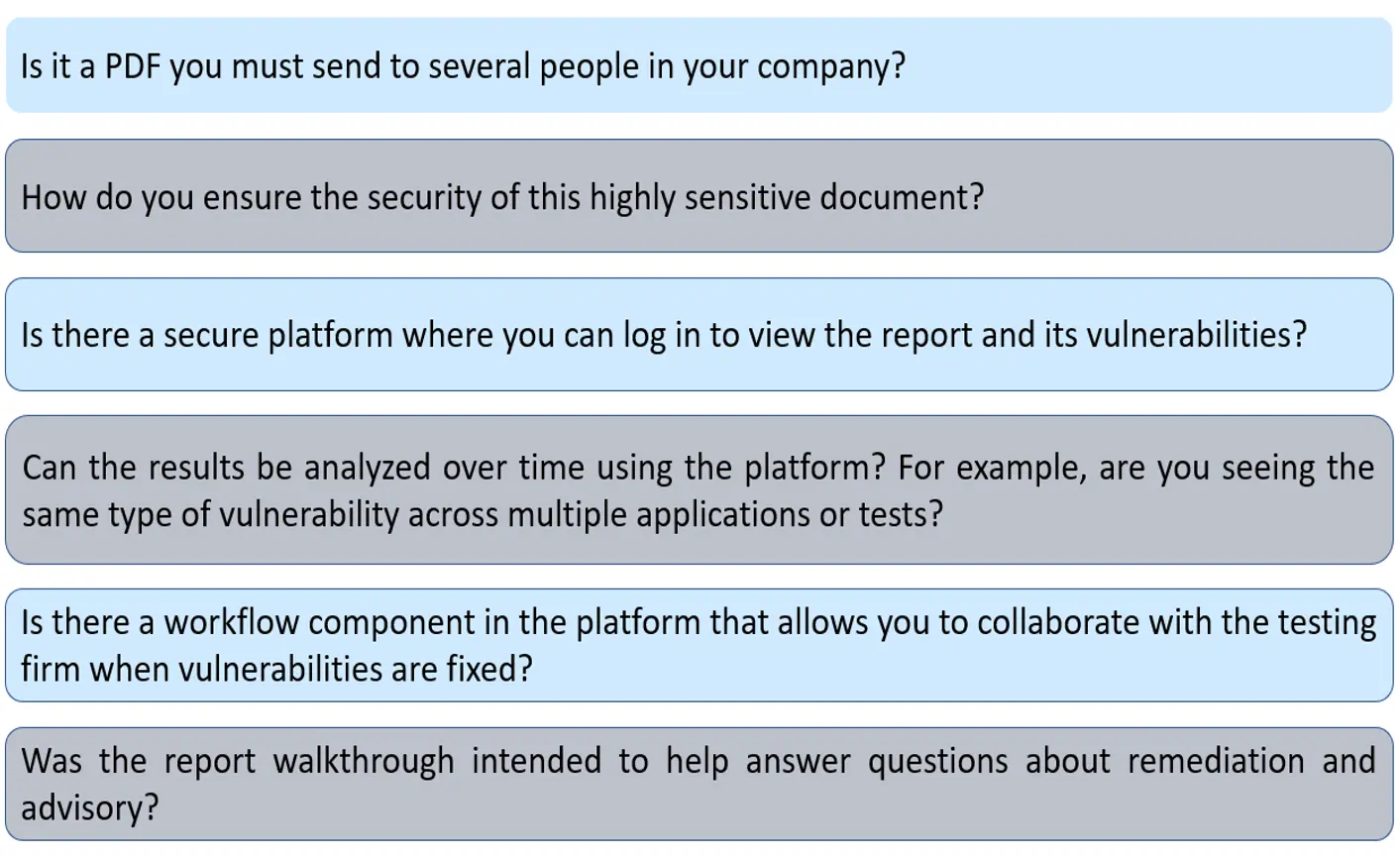 The delivery process and platform are crucial when hiring a security testing firm. It is essential to understand how the testing results will be delivered, how the report will be accessed and secured, and whether there will be a platform for analyzing the results over time and collaborating on vulnerability fixes. Furthermore, clear communication and regular updates on the test status can aid in the delivery process.